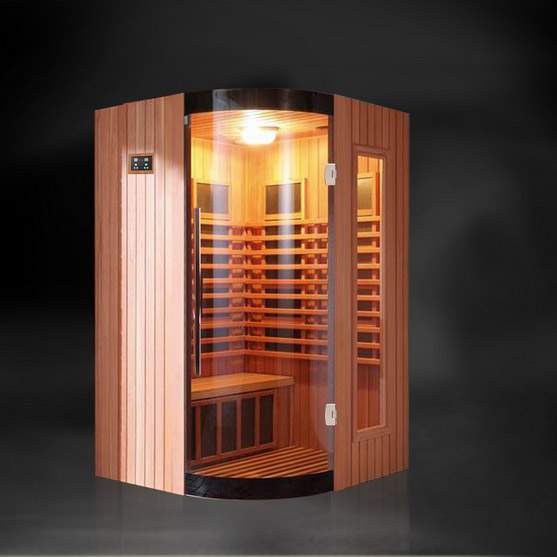 Красивая ИК-сауна выполнена из канадского красного кедра, она с легкостью поместится даже в небольшой ванной комнате.
